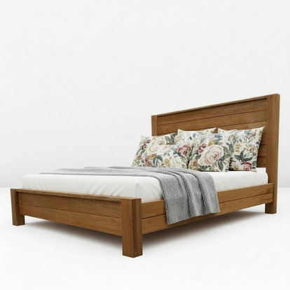 Una pieza que celebra la belleza honesta de la madera, diseñada para ser el alma de cualquier habitación. Su estructura robusta se complementa con un cabecero de listones horizontales que aporta una sensación de orden y serenidad, mientras que sus vetas naturales añaden una textura única y acogedora.