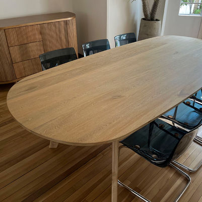 Esta mesa de comedor ovalada es la pieza central perfecta para un espacio moderno y luminoso. Su diseño de inspiración escandinava, con líneas suaves y materiales naturales, crea un ambiente acogedor y elegante que invita a la conversación.