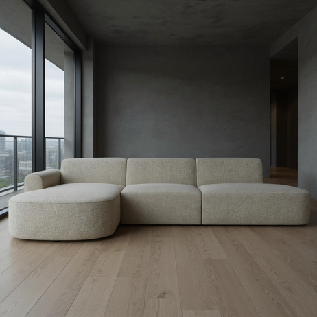 El modelo Eliza destaca por sus formas suaves y redondeadas que eliminan las aristas rígidas, creando un ambiente de calma y fluidez. Su diseño modular permite una versatilidad única, adaptándose a las dimensiones de tu espacio mientras mantiene una estética de "isla de confort" que invita al descanso total.